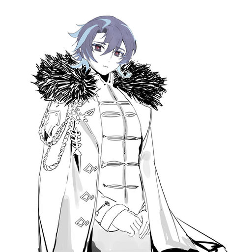 A complete illustration of a character with lineart, colour, full rendering and white/basic background.